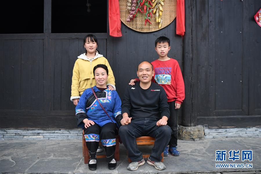 這是4月25日拍攝的楊正邦(前右)一家的合影。楊正邦1978年出生于十八洞村,在外打工多年。近些年,眼看來十八洞村的游客越來越多,村里越來越熱鬧,楊正邦在2017年結束自己的打工生涯回鄉發展。他先是在村里擺起小吃攤,2018年開起農家樂,去年又搭起新房子擴建成民宿,年度家庭人均純收入從2014年的1923元增加到2019年的7173元。新華社記者薛宇舸攝