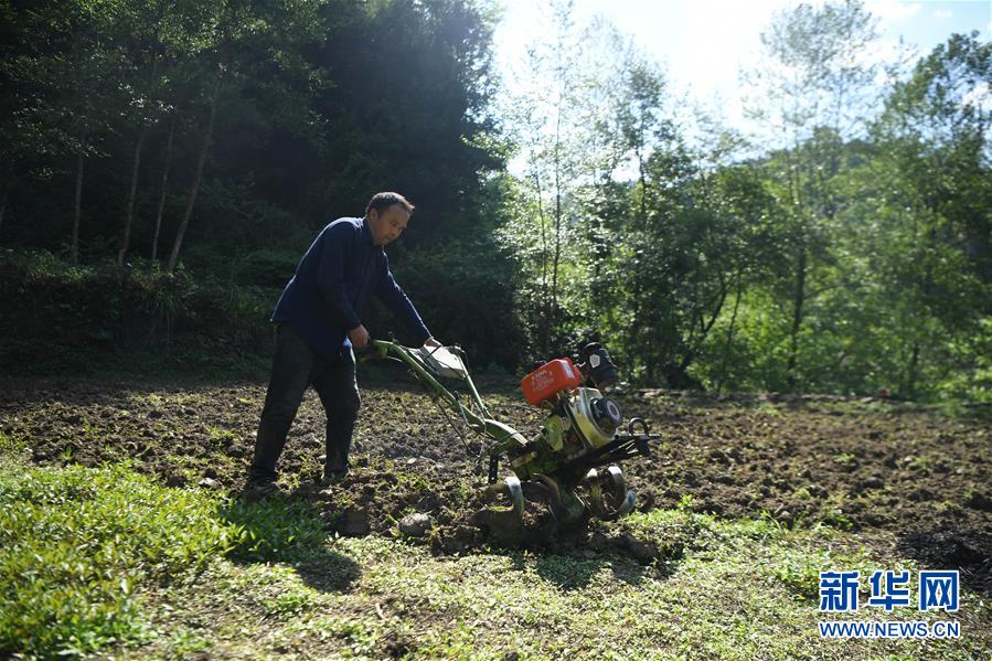 施六金在田間翻耕(4月24日攝)。1973年出生于十八洞村的施六金,由于父親患病很早就放棄學業和母親扛起了家庭的重擔。為了生活,他還曾遠去東南亞打工。2015年,看到家鄉的變化,施六金回到村里開起了農家樂,年度家庭人均純收入也從2014年的1715元增長到了2019年的35696元。2018年,施六金與心愛的人組建了家庭。今年初,施六金與愛人迎來了一個大胖小子。“做人做事要懂得回報和感恩。”施六金給剛出生的兒子取名施澤恩。新華社記者薛宇舸攝