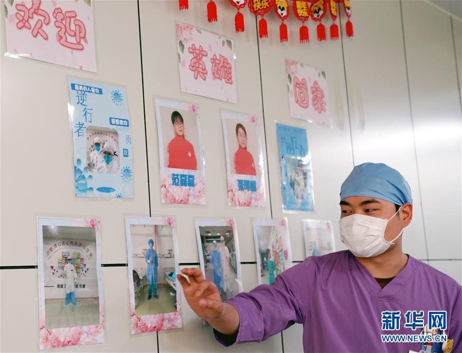 5月10日,上海市普陀區中心醫院急診重癥監護室的護士范磊磊站在同事們制作的“榮譽榜”前。這是科室同事為了歡迎他和另一位援鄂護士平安歸來而準備的“驚喜禮物”。新華社記者劉穎攝