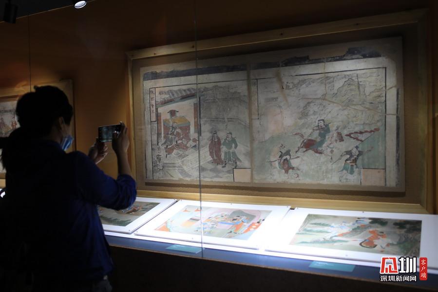 2020年5月10日報道,近十年來最大規模三國文物展“三國志——文化主題特展”,正在中華世紀壇展出。圖為觀眾在看關公壁畫。