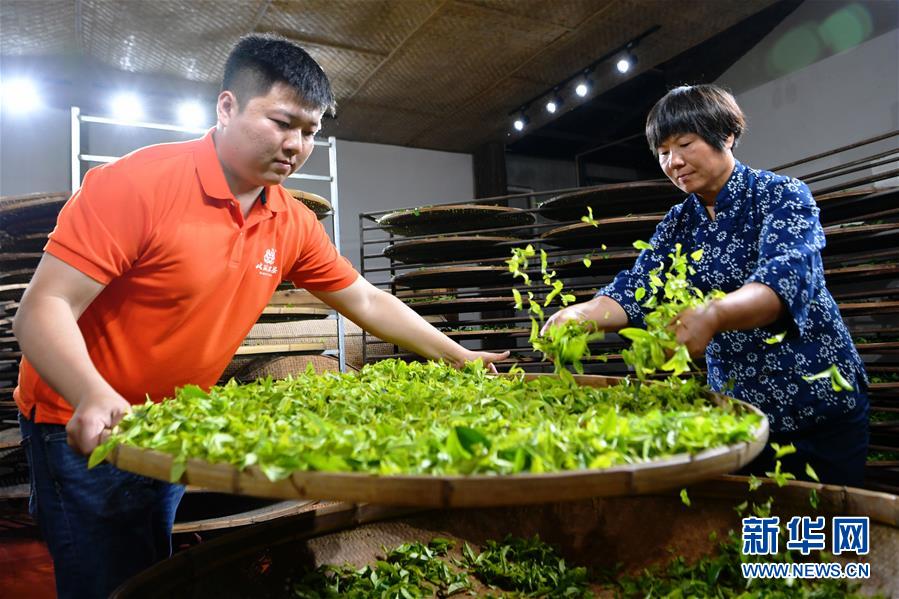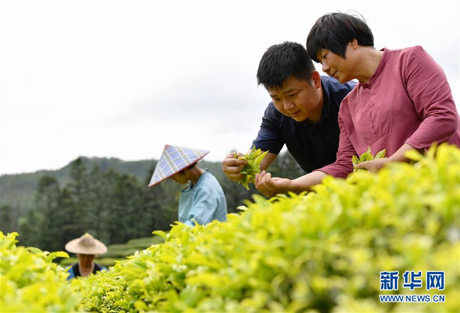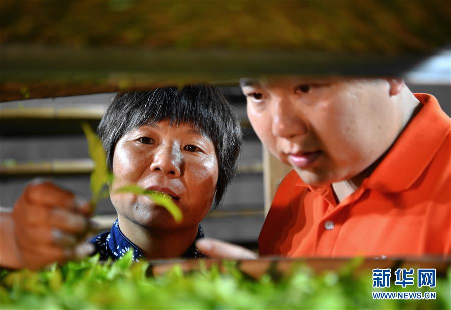 游玉瓊跟方舟一起對武夷巖茶中的白雞冠品種按白茶做法進行創新研發(5月10日攝)。新華社記者魏培全攝