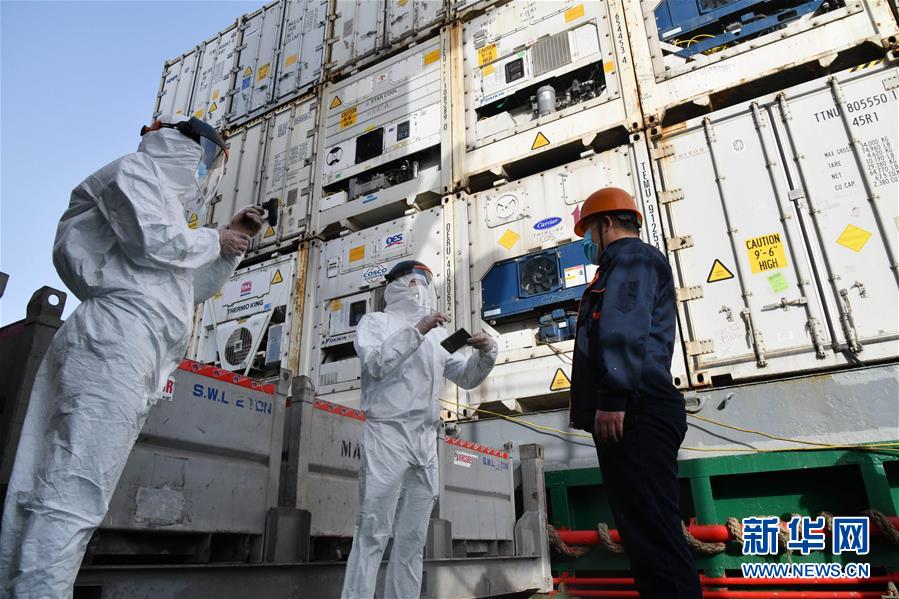 5月13日,山東威海出入境邊防檢查站民警在核對外籍船員證件。面對疫情防控要求,山東威海出入境邊防檢查站嚴密勤務組織、強化數據研判,加強口岸、碼頭的日常巡查,對國際船舶和船員強化監管,全力打好疫情防輸入攻堅戰。據統計,自2月份以來,威海邊檢站共服務出入境(港)船舶400余艘次,出入境(港)人員7000多人次,為180多個集裝箱防疫物資提供通關便利。新華社記者朱崢攝