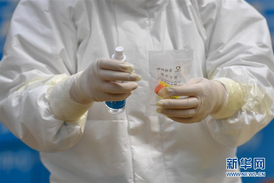 5月15日,在舒蘭市建馨園小區,工作人員對承裝樣本的塑料袋進行消毒。當日,從吉林市7家市直醫院抽調的300名護士經培訓后,全部投入到舒蘭市(隸屬于吉林市)核酸采樣工作中。為提供追溯傳染源所必需的核酸檢測相關數據,舒蘭市根據確診病例的活動軌跡,將流調和核酸檢測范圍擴大至本地確診病例和無癥狀感染者的次密接人員及一般接觸者。新華社記者張楠攝