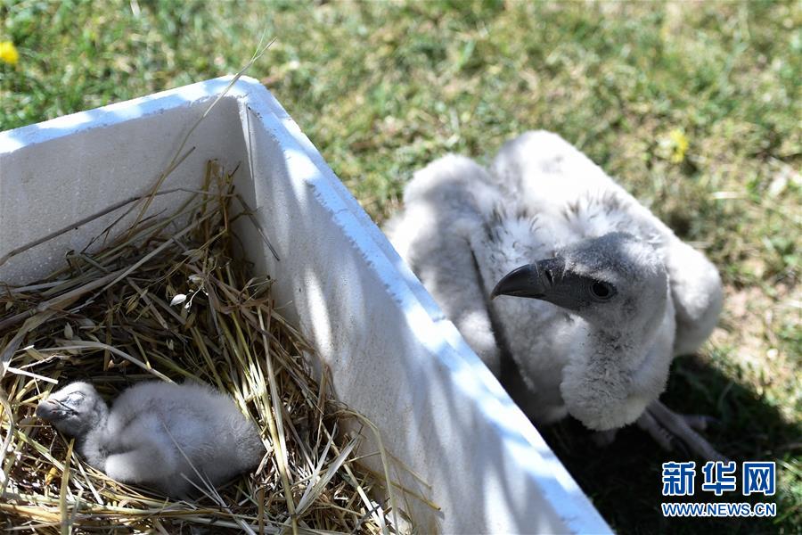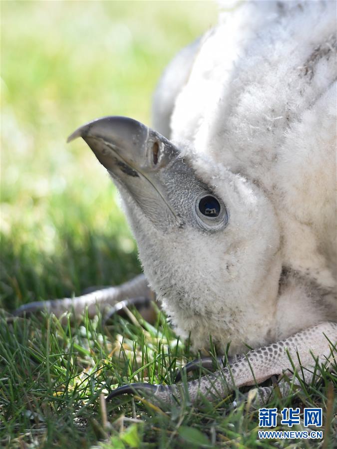 這是5月17日在西寧野生動物園拍攝的人工繁育的高山兀鷲。當日,兩只人工繁育的高山兀鷲亮相西寧野生動物園。兩只雛鳥為國內現存第三只、第四只人工繁育高山兀鷲。目前兩只雛鳥各項身體指標穩定,身體健康。新華社記者張龍攝