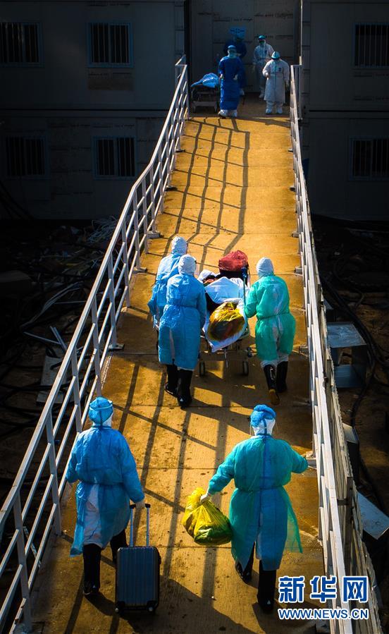 醫護人員走向武漢火神山醫院病房(2月4日攝)。新華社記者肖藝九攝
