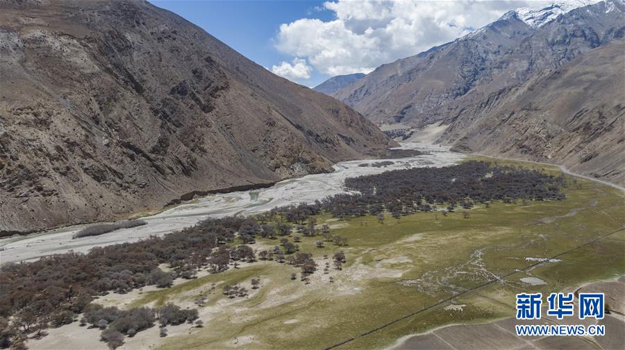 珠穆朗瑪峰國家級自然保護區內的沙棘林和濕地(5月16日攝,無人機照片)。新華社記者普布扎西攝