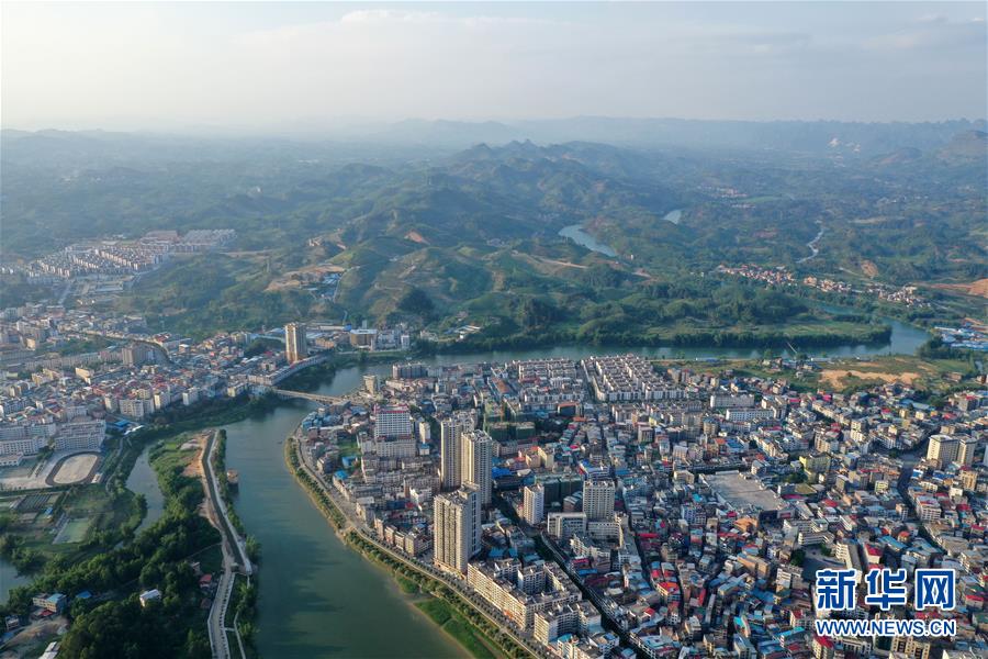 這是廣西環江毛南族自治縣縣城風貌(5月14日攝,無人機照片)。毛南族是我國28個人口較少民族之一,廣西壯族自治區環江縣是國家扶貧開發工作重點縣,也是全國唯一的毛南族自治縣,全縣有毛南族6.45萬人,占全國毛南族總人口的約70%。2019年底,環江縣貧困發生率降至1.48%。2020年5月,環江縣退出貧困縣序列。綜合全國毛南族脫貧情況,毛南族已實現整族脫貧。新華社記者陸波岸攝