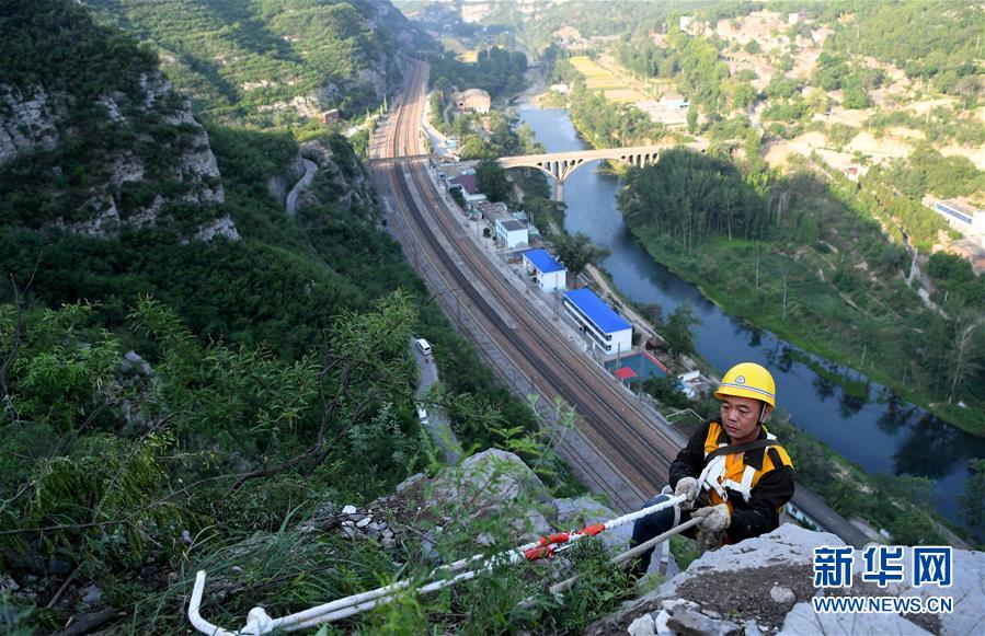 在太行山深處的中國鐵路鄭州局集團有限公司月山工務段,有一群被稱為捅山工的人。每年汛期來臨前,他們要對山體進行檢查、清理,在懸崖峭壁間“行走”,揮動著手中的鋼釬,排除威脅鐵路行車安全的危石。