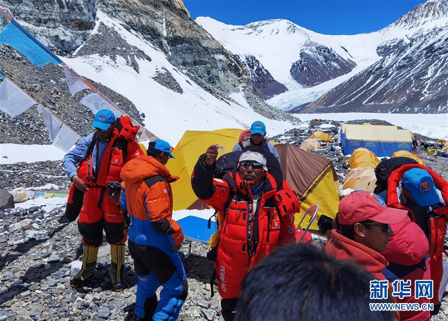 5月24日,2020珠峰高程測量登山隊部分人員從海拔6500米的前進營地出發。新華社特約記者拉巴攝