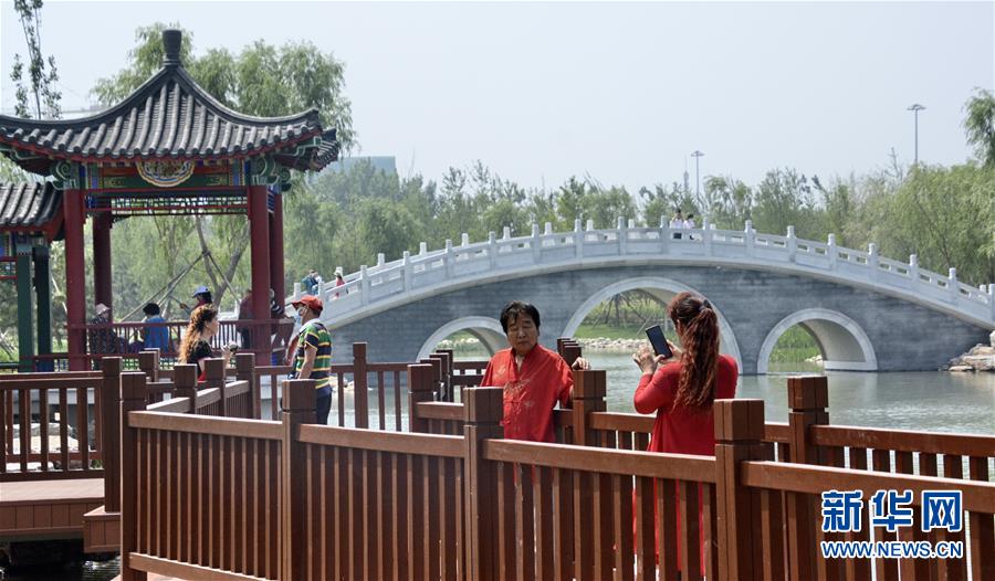 5月24日,北京大興區舊宮鎮居民在剛剛建成開放的森林公園內游玩。這個公園占地面積500多畝,種植了70多種喬木和灌木,并設置濕地景觀區、田園風光區、林間徒步區等景觀區域。近年來,北京市大興區舊宮鎮大力發展城市森林和綠地建設,先后建設了十余個大小不同的公園和綠地林地區域,總面積近4000畝,讓城市居民“聽得到河畔蛙聲、聞得見草味花香、看得到綠地森林”,居住環境大為改善。新華社記者李欣攝