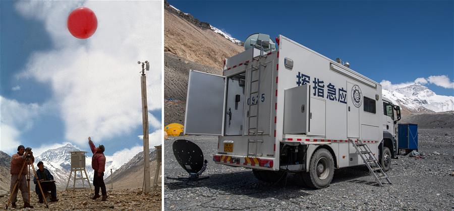 拼版照片:左圖為1975年6月9日,我國氣象工作者在珠穆朗瑪峰腳下的高山氣象站收集氣象資料。新華社記者程至善攝右圖為2020年5月25日拍攝的珠峰大本營氣象應急保障車,西藏自治區氣象局氣象專家在這里與后方氣象專家進行天氣會商。新華社記者普布扎西攝
