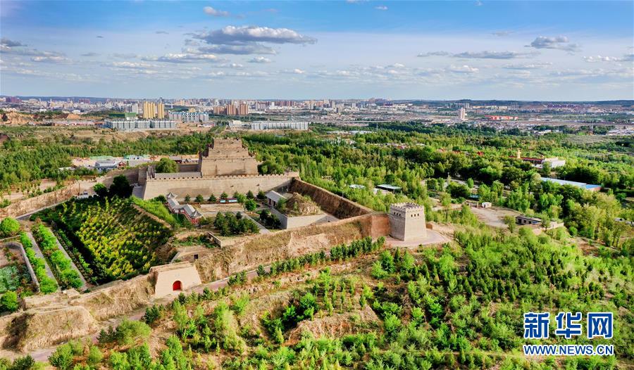 5月24日拍攝的樹林環繞的榆林市鎮北臺(無人機照片)。 2017年4月起,地處毛烏素沙漠南緣的陜西省榆林市開展主城區百萬畝生態圈及環城防護林帶建設,對荒山荒地荒沙、撂荒地、不宜耕作土地、閑置土地進行造林綠化,對低效林地進行提升改造。2019年11月,榆林市被授予“國家森林城市”稱號。昔日區域內的裸露土地全面綠化,城市及周圍處處綠樹成蔭,呈現出一派“塞上森林城”的美景。 新華社記者陶明攝
