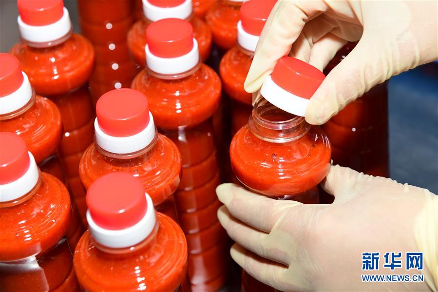 5月26日,工人在貴州省黔東南苗族侗族自治州麻江縣明洋食品公司生產車間灌裝古法酸湯。新華社記者楊楹攝