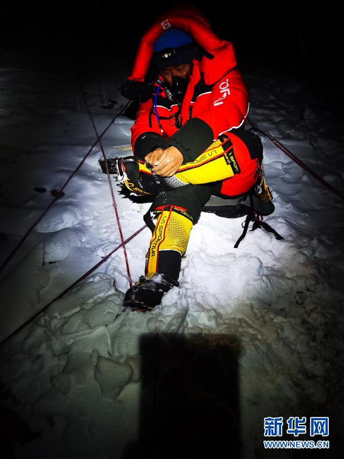 5月27日,2020珠峰高程測量登山隊從海拔8300米的突擊營地出發。新華社特約記者扎西次仁攝