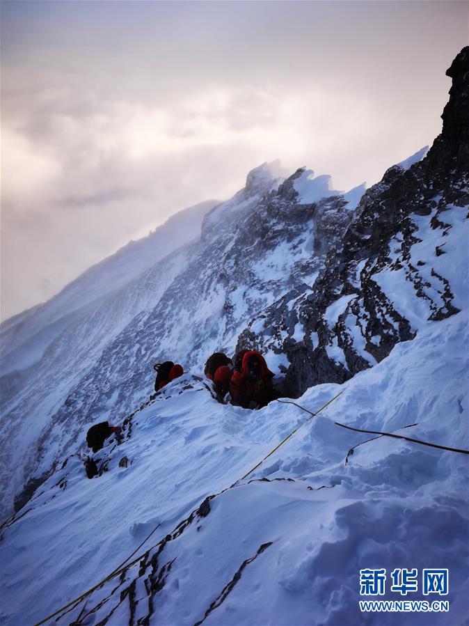 5月27日,2020珠峰高程測量登山隊正在向珠峰峰頂進發。新華社特約記者扎西次仁攝