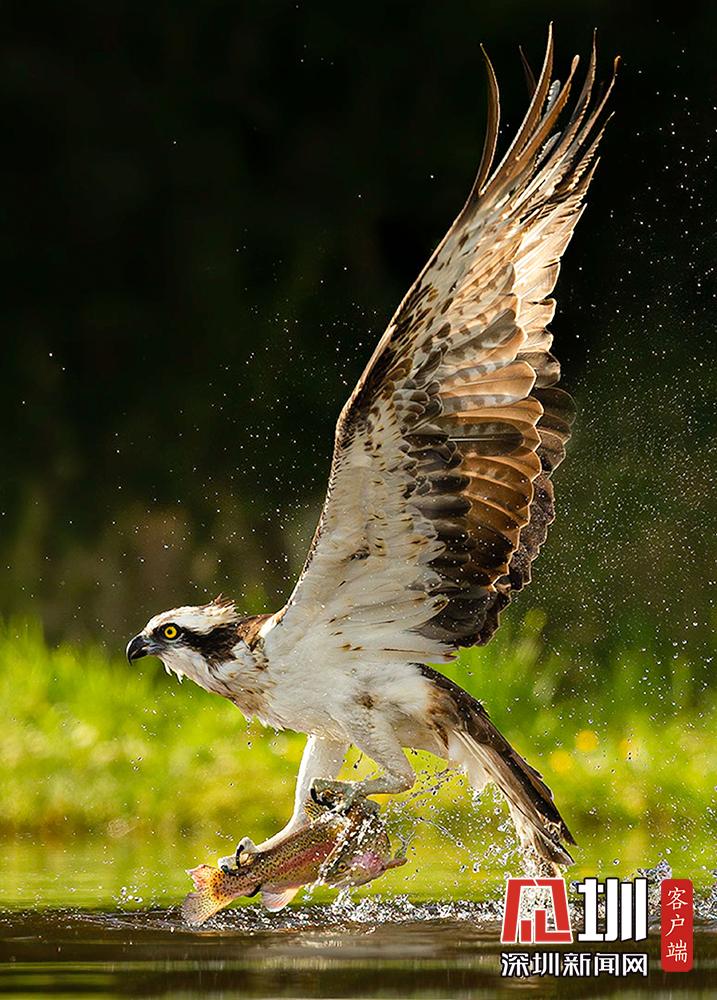 2020年5月28日報道(具體拍攝時間不詳),54歲的Gladys Klip來自荷蘭,是一名銀行助理,他在蘇格蘭高地拍攝到魚鷹捕魚的精彩照片。畫面中,魚鷹快速俯沖而下,掠過水面,鷹爪隨即從水中成功抓起一條魚兒,濺起水花,整個過程精彩詮釋快準狠。Gladys Klip稱他在早晨5點的時候已經在等候拍攝。
