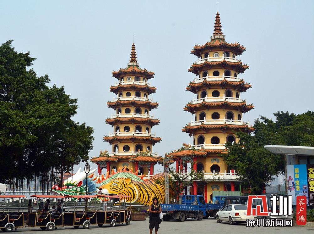 2014年3月18日,臺(tái)灣蓮池潭原名連花潭,位于高雄市左營區(qū)的東側(cè),南鄰龜山、北接半屏山,潭長1.4公里、寬約400公尺,潭面面積約42公頃。<br>池潭西岸廟宇林立,五百公尺內(nèi)擁有二十馀座寺廟,由北而南分別有孔子廟、北極玄天上帝、啟明堂、春秋閣、五里亭、龍虎塔等,為高雄有名的寺廟觀光景點(diǎn)。