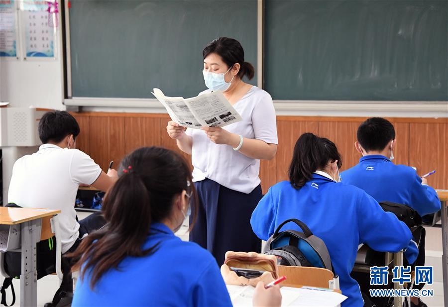 5月28日,北京市第十八中學的初三年級學生在上課。北京市第十八中學共有初三年級學生340余名,學校在做好初三年級學生中考文化課備考的同時,加強學生心理及身體素質的鍛煉,以最好的精神狀態備戰中考。據悉,2020年北京中考報名人數為7.5萬人,比去年增加25%。新華社記者任超攝