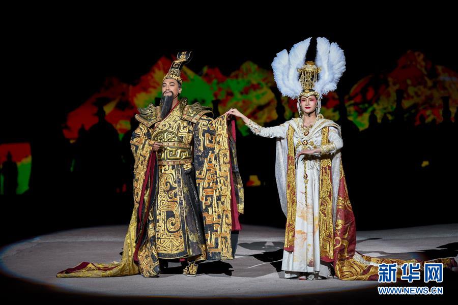 5月28日,演員在大型實景神話音樂劇《昆侖之約》中表演。5月28日,新疆文化旅游新名片——大型實景神話音樂劇《昆侖之約》在烏魯木齊南山景區上演。該劇融自然山水之美、藝術文化之光、現代科技之新于一體,為市民獻上一場視聽盛宴。新華社記者丁磊攝