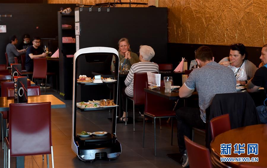 5月28日,在奧地利維也納一家亞洲餐廳內,機器人給顧客上菜。維也納的一家亞洲餐廳于疫情期間重新營業后,更多利用機器人上菜,以減少服務員和顧客之間的非必要接觸。新華社記者郭晨攝