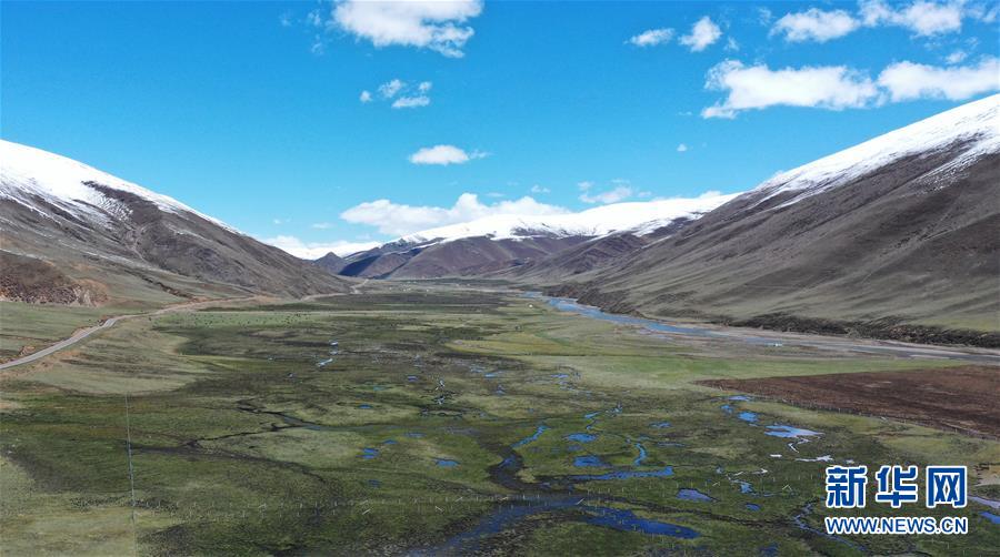 這是5月29日拍攝的四川省甘孜藏族自治州理塘縣奔戈鄉卡灰村一景(無人機照片)。四川省甘孜藏族自治州理塘縣地處青藏高原東部,縣城海拔約4000米,有“天空之城”的美譽。時值初夏,理塘的天空碧藍如洗,巍峨的雪山環繞四周,牦牛星星點點散落于曠野之上,構成一幅高原特有的壯美圖景。新華社記者李夢馨攝