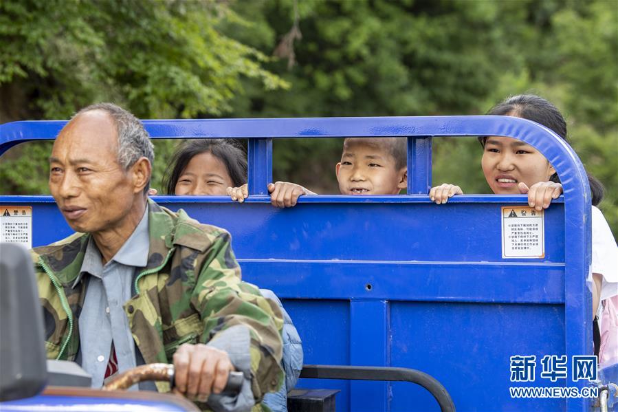 6月2日,秦春蘭、秦秋蘭和秦興旺姐弟三人乘坐父親駕駛的三輪車(chē)前往學(xué)校。新華社記者楊晨光攝。