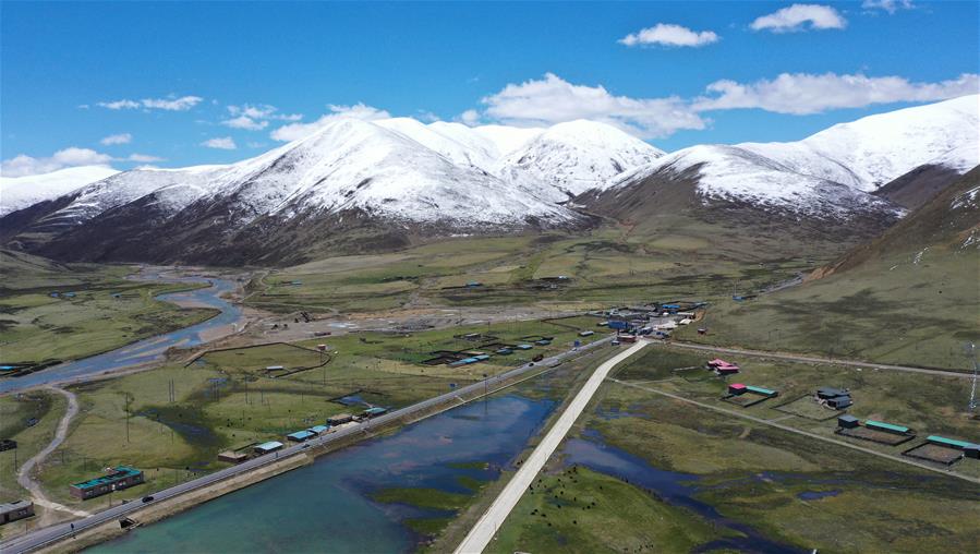 四川省甘孜藏族自治州理塘縣地處青藏高原東部,縣城海拔約4000米,有“天空之城”的美譽。時值初夏,理塘的天空碧藍如洗,巍峨的雪山環繞四周,牦牛星星點點散落于曠野之上,構成一幅高原特有的壯美圖景。新華社記者李夢馨攝。