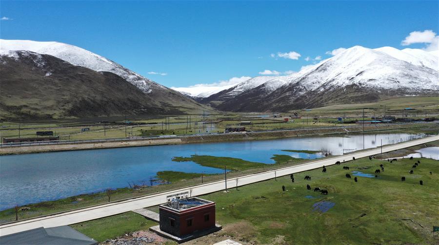 四川省甘孜藏族自治州理塘縣地處青藏高原東部,縣城海拔約4000米,有“天空之城”的美譽。時值初夏,理塘的天空碧藍如洗,巍峨的雪山環繞四周,牦牛星星點點散落于曠野之上,構成一幅高原特有的壯美圖景。新華社記者李夢馨攝。