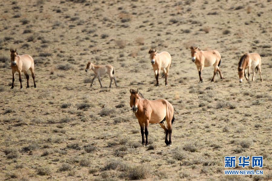 這是6月3日在新疆卡拉麥里山有蹄類野生動物自然保護區拍攝的普氏野馬。新華社記者丁磊攝。