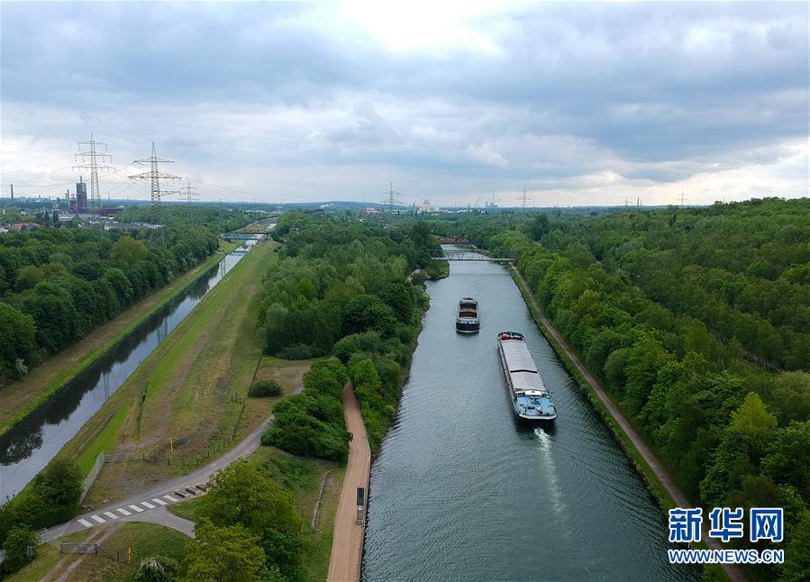 2019年5月10日,貨船航行在德國埃森埃姆舍河上。埃森位于德國傳統煤鐵工業區——魯爾區。魯爾區經歷了產業轉型,已成為環境優美、高科技聚集的創新經濟區。6月5日是第47個聯合國世界環境日,今年的主題為“關愛自然刻不容緩”。新華社記者逯陽攝。