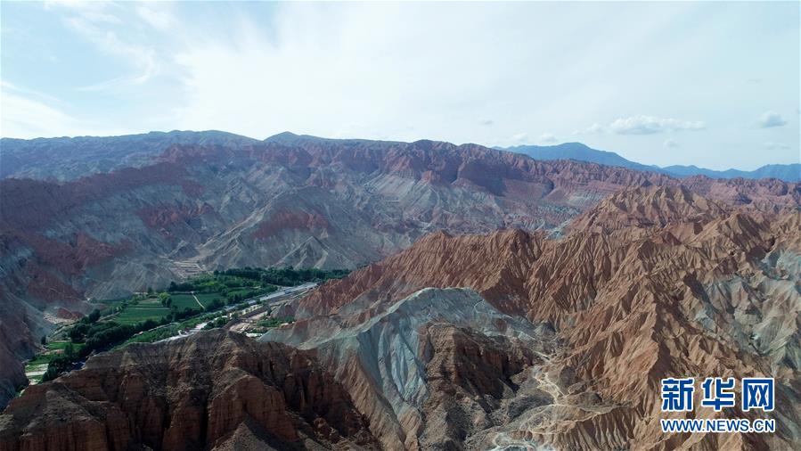 這是6月5日拍攝的位于青海省海南藏族自治州貴德縣境內的丹霞地貌(無人機照片)。在青海省海南藏族自治州貴德縣境內,色彩斑斕的丹霞地貌美如畫卷。新華社記者趙玉和攝。