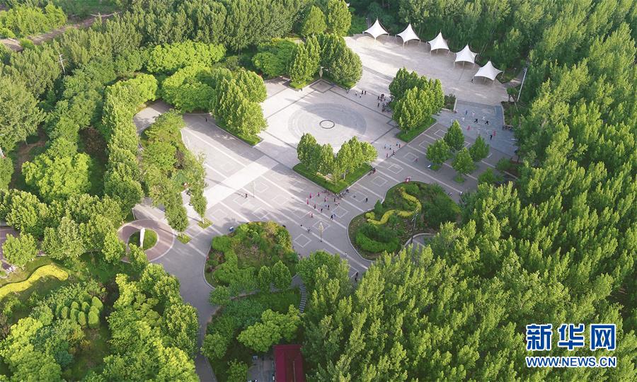 6月5日,市民在文安縣森林公園內健身。近年來,河北省文安縣將植樹造林與城市建設有機融合,探索“政府引導、企業運作、多方共贏”的市場化植樹造林新模式,大規模推進國土綠化,打造人與自然和諧共生的優美生態環境,構筑京津雄綠色屏障。截至目前,該縣森林覆蓋率已經達到33%,城區綠地面積達到36.48%。新華社記者李曉果攝。