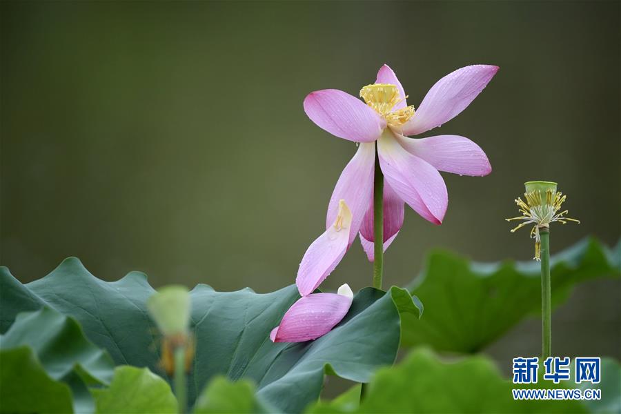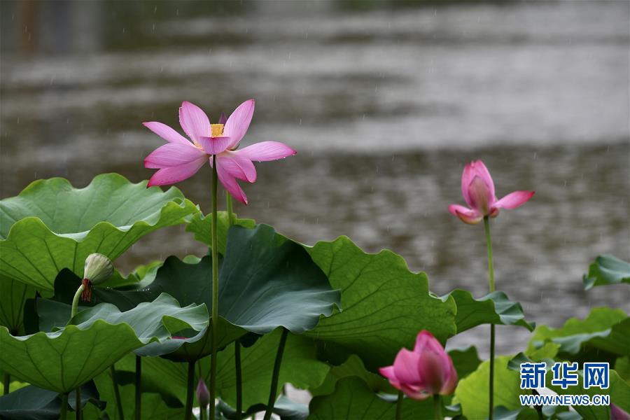 6月7日,一陣小雨過后,福州金山公園內盛開的荷花愈加嬌艷欲滴。新華社記者姜克紅攝