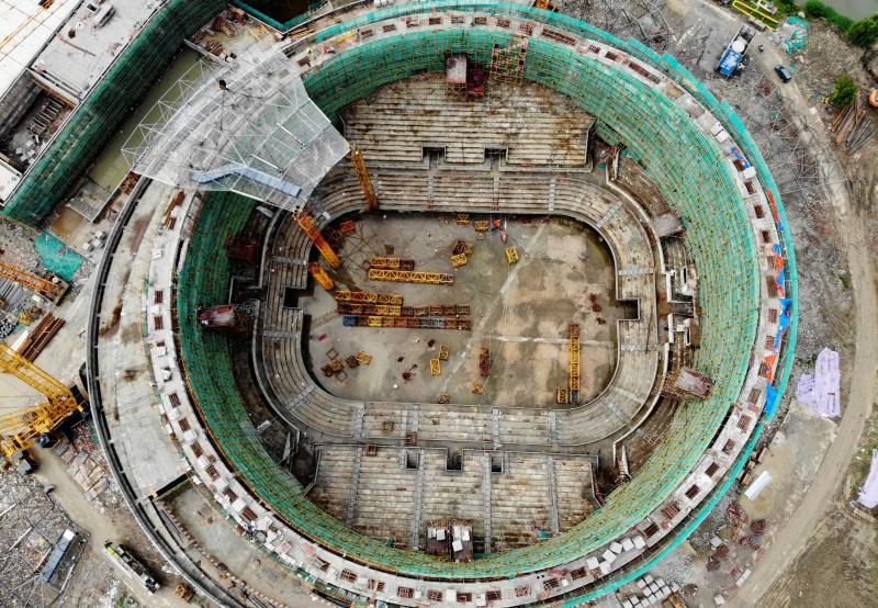 2020年6月9日,從空中俯瞰正在建設中的杭州亞運會乒乓球館。
