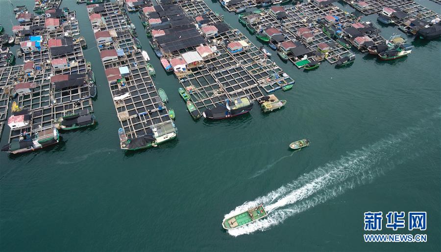 6月13日,漁船陸續駛回陵水黎族自治縣新村港碼頭內停靠避風(無人機照片)。當日,海南省氣象局于16時30分繼續發布臺風四級預警。今年第2號臺風“鸚鵡”(熱帶風暴級)預計于14日在廣東沿海登陸。新華社記者楊冠宇攝。