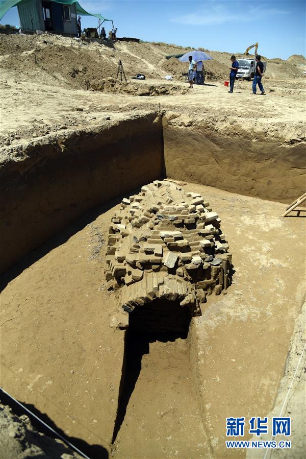 這是6月14日拍攝的山東小清河章丘段考古發掘現場。近日,濟南市考古研究所考古工作隊在對小清河章丘段進行考古調查和勘探時,發現了13座年代集中在北朝末期至唐朝初期的古墓。新華社記者 王凱 攝