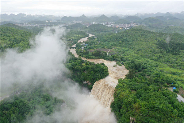 2019年6月12日,貴州省安順市黃果樹瀑布景區(qū)。(無人機航拍)