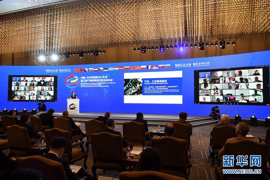 6月16日,中國-中東歐國家中小企業復工復產視頻信息交流與洽談會在北京舉行,河北省滄州市設分會場。本次會議以“暢通信息交流,激活企業合作”為主題,157家來自中國與135家來自17個中東歐國家的中小企業和機構圍繞“產業、工業制造”“貿易投資、農業”“旅游、人文交流”“醫療衛生”四大版塊進行洽談對接。新華社記者 金良快 攝