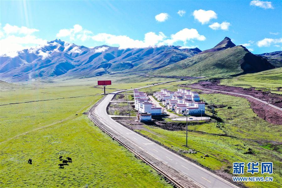 國道317線旁的一處易地扶貧搬遷點(6月14日攝,無人機照片)。新華社記者 田金文 攝