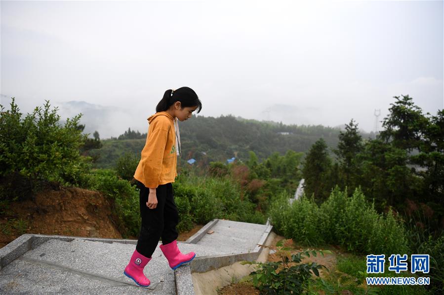 6月20日,蔡齊艷在山頂玩耍。高灣村新修了旅游觀光步道,以發展旅游脫貧項目。新華社記者劉軍喜攝