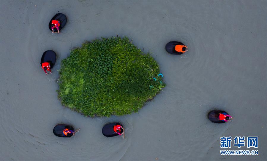 6月23日,東林鎮村民在泉心村荷花池參加端午劃菱桶趣味活動(無人機照片)。當日,浙江省湖州市東林鎮在泉心村荷花池舉辦“慶端午劃菱桶”趣味活動。村民們劃著菱桶在水面上你追我趕,同時采收荷花和蓮蓬,呈現出水鄉特有的端午節日氛圍。在河網密布的東林鎮,菱桶是水鄉家家戶戶都有的一種傳統水上勞動工具,村民在捕魚、采菱、采荷時都要用到。