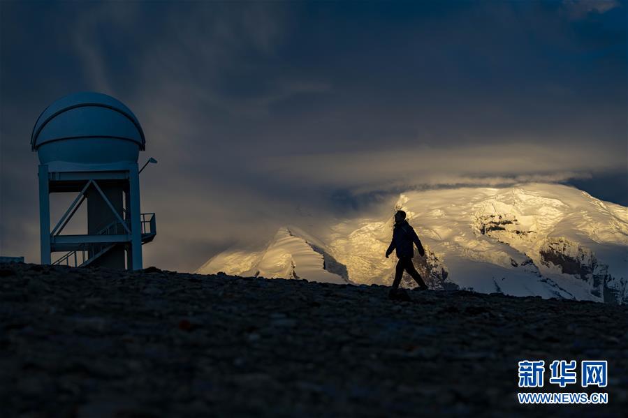 天文科技工作者馮國杰在中國科學院新疆天文臺慕士塔格觀測站內巡查(6月15日攝)。新華社記者胡虎虎攝