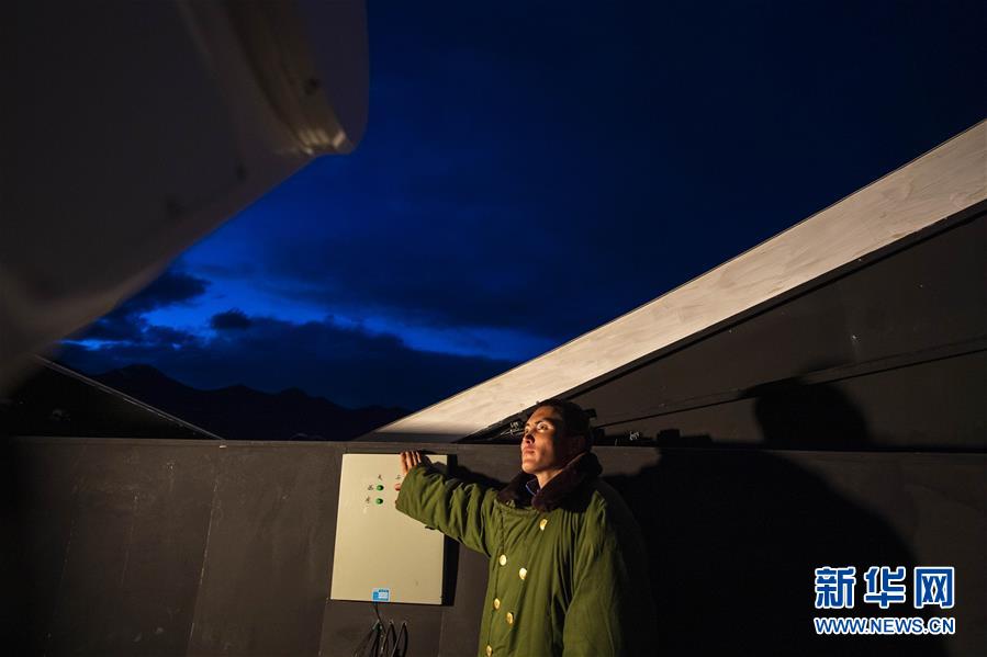 在中國科學院新疆天文臺慕士塔格觀測站,助理觀測員阿克力·圖拉提開啟望遠鏡圓頂,準備開始當晚的觀測(6月15日攝)。新華社記者胡虎虎攝
