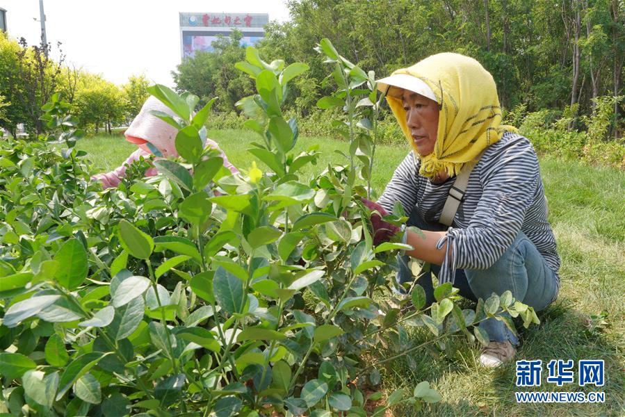 6月28日,園林工人在唐山至曹妃甸生態廊道內打理綠植。近日,河北省唐山市唐山至曹妃甸生態廊道工程全線竣工。該生態廊道主要位于承唐高速及唐曹高速沿線,總長度約70公里,工程在整體風貌把握上充分尊重現狀林、村莊、魚塘、稻田、濕地等生態本底條件,因地制宜設計,成為一道亮麗的風景線。新華社記者牟宇攝