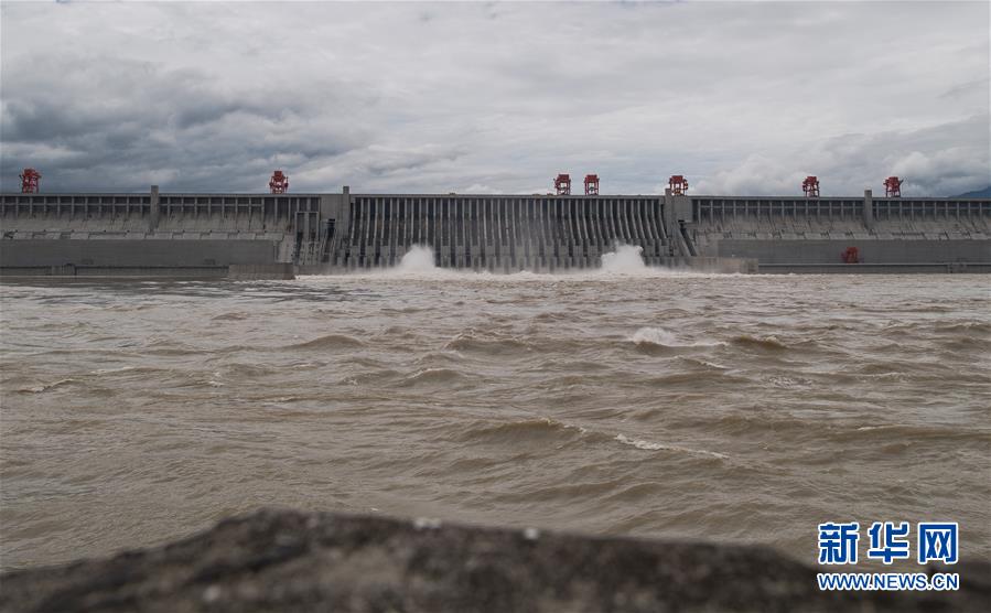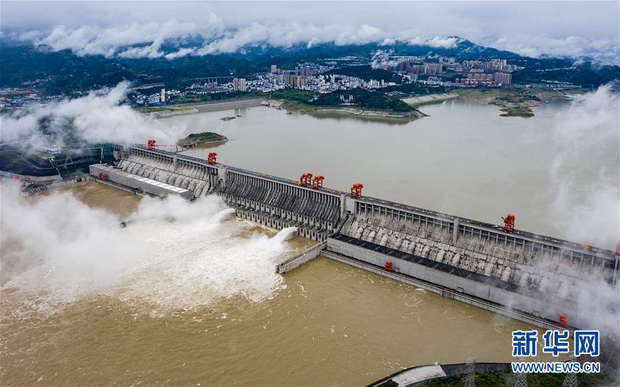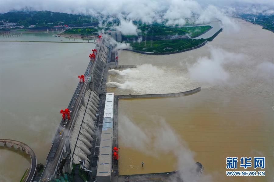 6月29日,三峽樞紐開啟泄洪孔泄洪。受長江中上游強降雨影響,進入三峽水庫的水量持續增多。為騰出一定庫容迎接近期可能到來的洪水,三峽樞紐于6月29日上午開啟兩個泄洪孔,加大下泄流量。這是三峽樞紐今年首次泄洪。28日14時,三峽水庫入庫流量達4萬立方米/秒,是27日14時的兩倍。為應對此輪來水,長江防總要求將三峽水庫下泄流量上調至日均3.5萬立方米/秒。新華社發(黃善軍攝)
