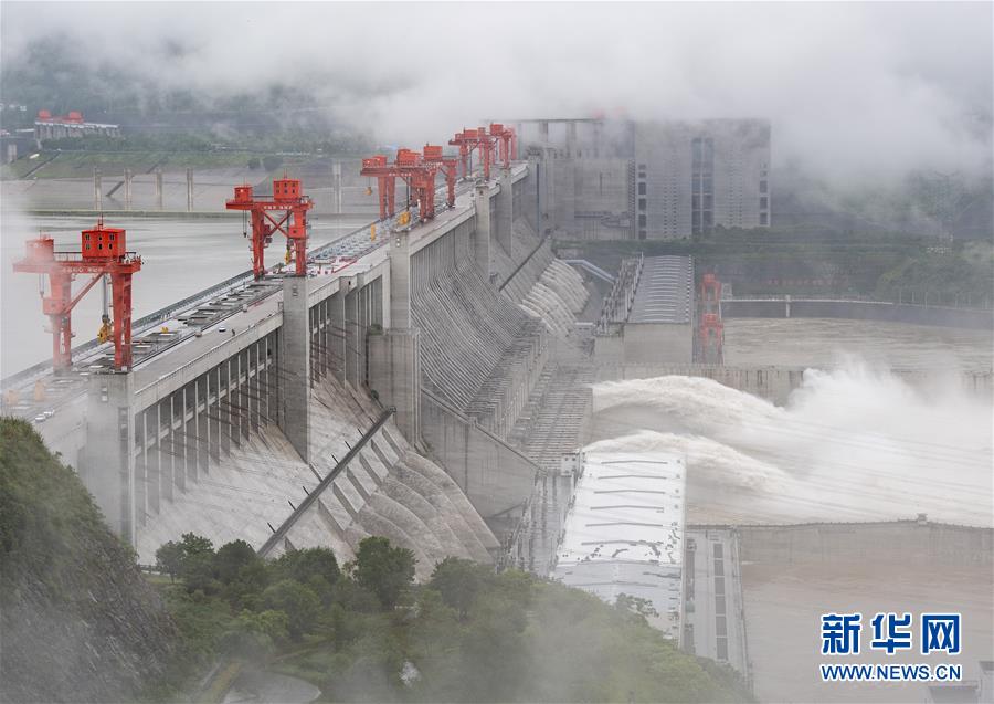 6月29日,三峽樞紐開啟泄洪孔泄洪。受長江中上游強(qiáng)降雨影響,進(jìn)入三峽水庫的水量持續(xù)增多。為騰出一定庫容迎接近期可能到來的洪水,三峽樞紐于6月29日上午開啟兩個(gè)泄洪孔,加大下泄流量。這是三峽樞紐今年首次泄洪。28日14時(shí),三峽水庫入庫流量達(dá)4萬立方米/秒,是27日14時(shí)的兩倍。為應(yīng)對此輪來水,長江防總要求將三峽水庫下泄流量上調(diào)至日均3.5萬立方米/秒。新華社發(fā)(鄭家裕攝)