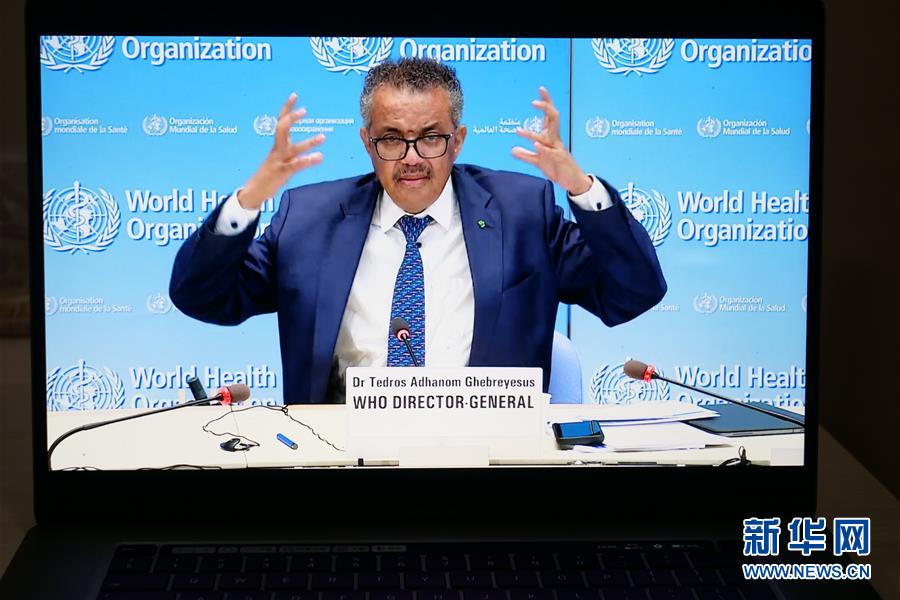 這是6月29日在比利時布魯塞爾拍攝的世界衛生組織總干事譚德塞在瑞士日內瓦出席線上記者會。世界衛生組織總干事譚德塞29日表示,全球新冠確診病例累計超過1000萬例,死亡病例累計超過50萬例,未來數月所有國家將面臨與病毒共存的“新常態”。新華社記者張鋮攝