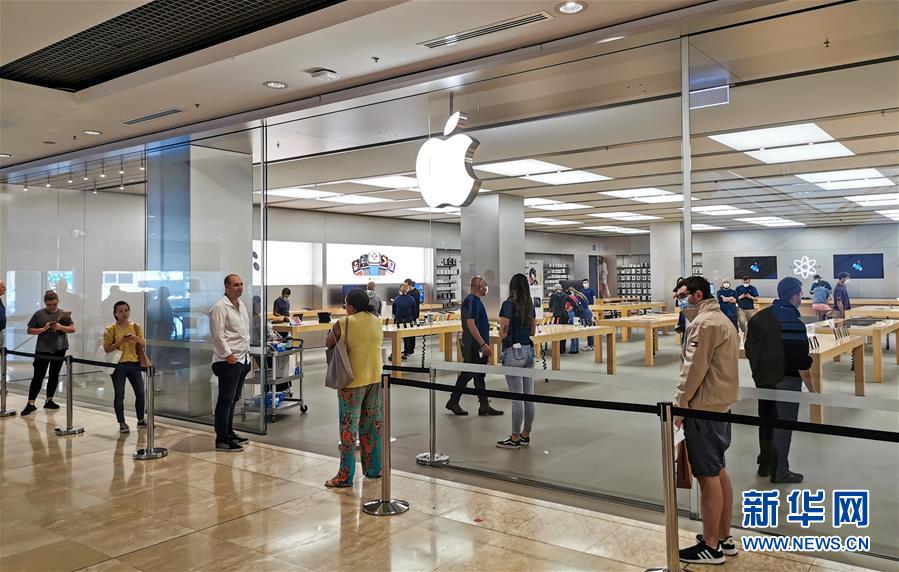 5月8日,在澳大利亞悉尼一家商場,顧客在重新營業的蘋果專賣店外排隊。新華社記者白雪飛攝