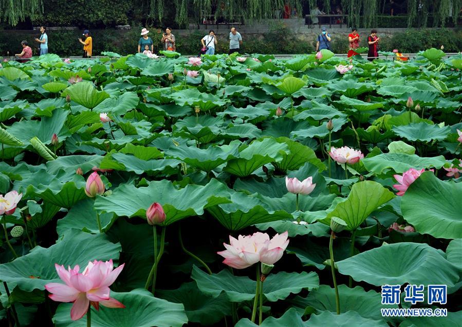 近日,河南鄭州紫荊山公園內的荷花陸續綻放,吸引大批市民和游客前來觀賞。新華社記者李安攝