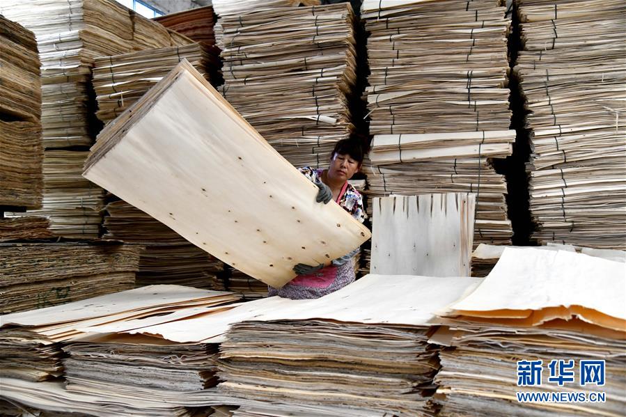 6月30日,在費縣坤林木業有限公司,工人在整理板材原料。地處沂蒙革命老區的山東省臨沂市費縣探沂鎮近年來圍繞鄉村振興戰略,謀劃“一鎮一業”,以木業產業為抓手,積極引導全鎮3136家木業企業進行園區化、集約化、智能化發展,成為遠近聞名的“木業特色小鎮”。2019年,該鎮規模以上工業總產值187億元,農民人均純收入2萬元左右,木業產業有力助推當地的鄉村振興。新華社記者郭緒雷攝
